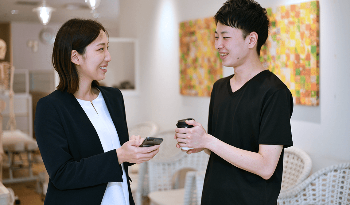 産休・育休制度はもちろんのこと、産休に入る前には本社の女性メンバーと面談があります(オンライン面談、電話面談、直接面談と希望や状況により様々な形式を用意しています)。「いつ頃から産休に入るのがよい?」「どんな手続が必要?」「復帰するときにはどこに連絡すれば良い?」の説明や、経験豊富なメンバーからのリアルなアドバイスなど・・・初めての方で不安もある方はこの面談で相談してみてくださいね。復帰時の時短勤務制度や、整体スキル思い出し研修もあります。