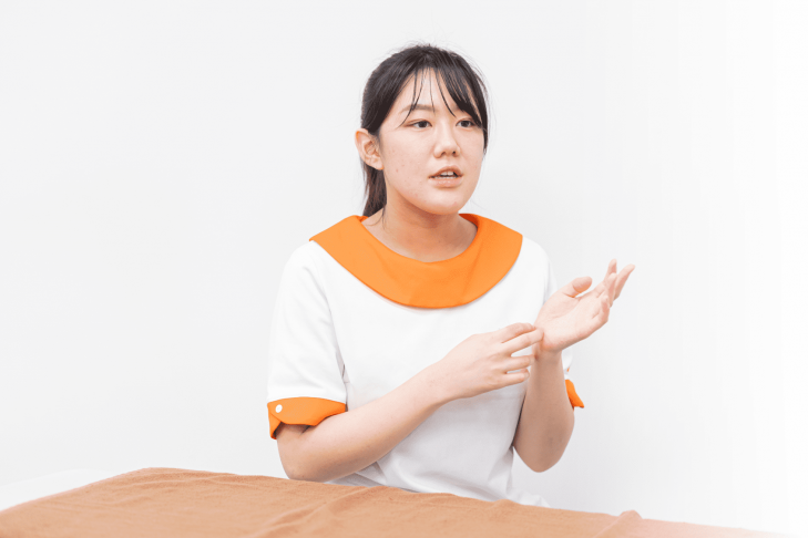 仕事のやりがい、醍醐味等をお客様の身体についての会話はもちろんですが、最近の出来事についてお話をしてくださったり、何気ない会話で笑って過ごしてもらえることが楽しいです。「身体が楽になった」「今日来てよかった」「本当にありがとう」などの言葉を頂けたときは最高の気分です!!!私自身の手で施術をして、こういう言葉をかけてもらえるのは、やりがいにもなるし素晴らしいことだと思います!
